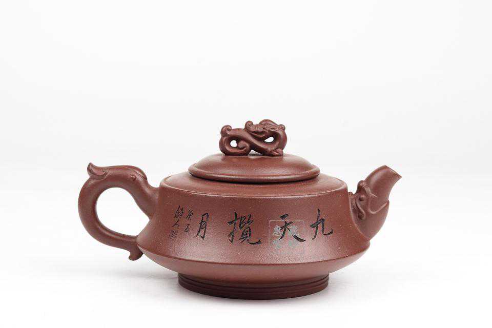 壶身刻绘“青云直上,九天揽月”与壶型搭配起来格外大气,沉稳,整体造型简练生动,宛若天成。