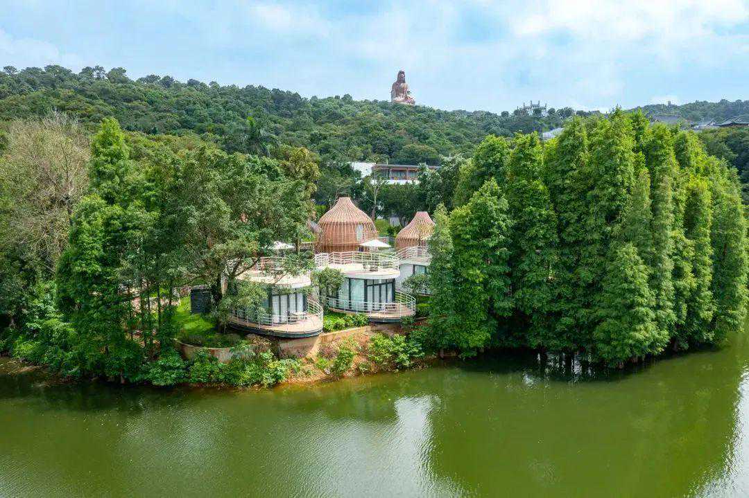 苗圃园的郁郁葱葱,东天湖的静谧湖水,搭配玲珑房、船坞呈现的视觉效果,让人心绪平静,住客可以在内湖深山之处感受自然的力量。