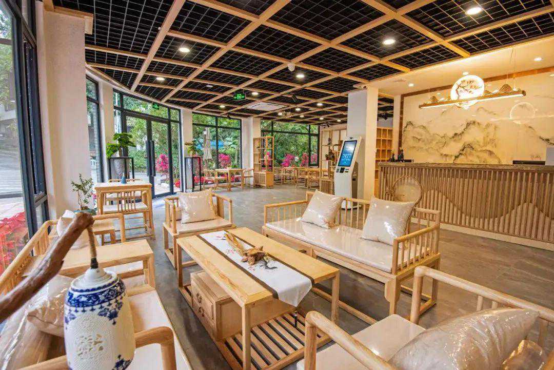 民宿占地面积虽然只有约400㎡,但内部“五脏俱全”,不仅有潮流的乡村咖啡馆、书吧,还有温馨的茶室、庭院等,情怀和氛围都很浓郁,足以容下诗和远方。