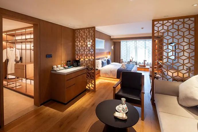 新中式的框架设计和自然流畅的灯光点缀,打造明亮宽敞的空间,给住客带来更多的舒适体验。