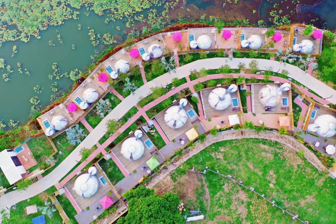 坐落山脚的雨林星空度假村设有星空院子、方舟院子、雨林山居、星空露营基地等房型,各具特色,360°山景一览无遗,极具野奢之风。