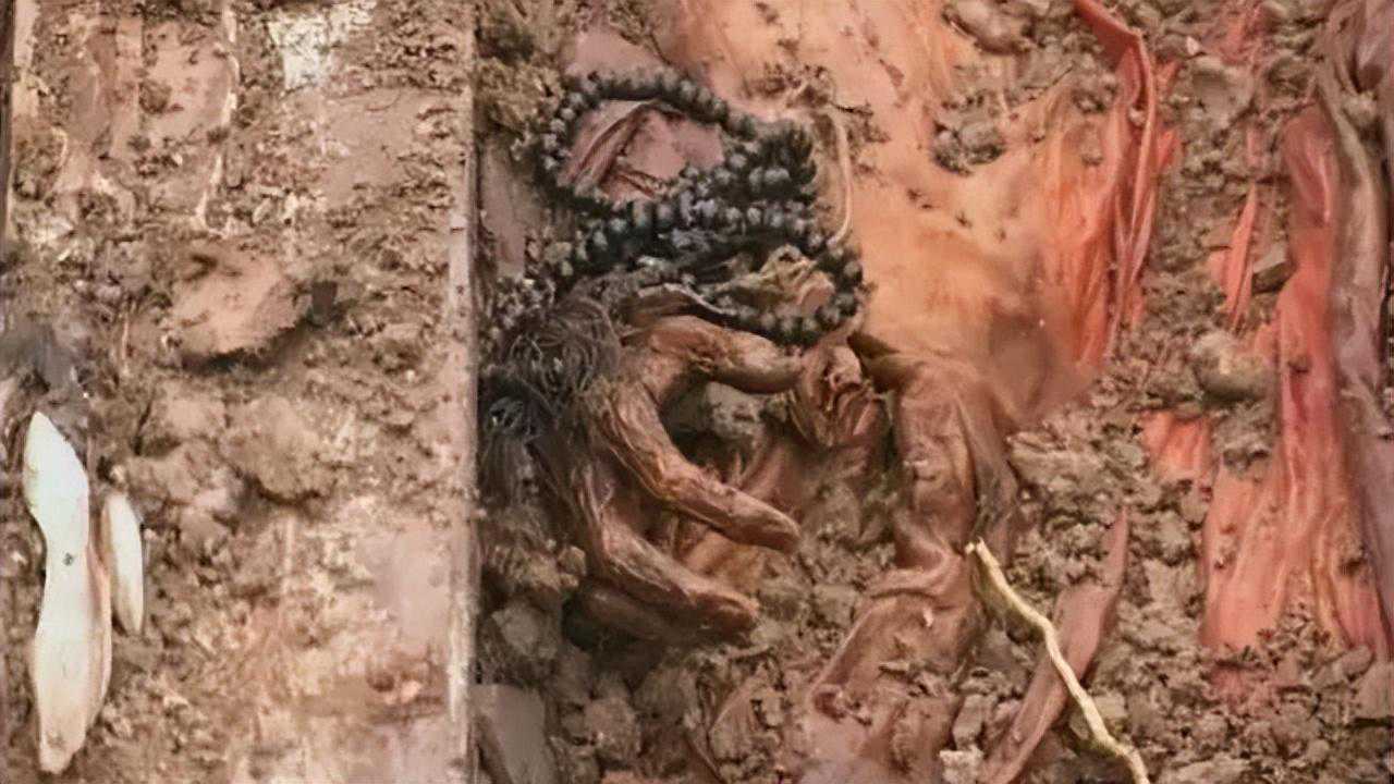 女尸身着一袭华美的绫罗绣袍,每一针每一线都诉说着精湛的手艺,彰显着主人生前不俗的身份。然而,真正令人惊叹的,是她双手合十之中,紧握的那一串晶莹剔透的佛珠。岁月无情,但这串佛珠却完好如初,每一颗珠子都在诉说着亘古不变的信仰。
