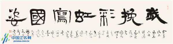 (隶书,我挽彩虹写国姿。51cm×236cm。)