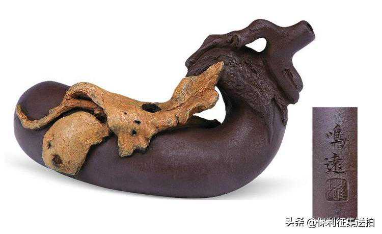 -高10.5厘米,口径8厘米。-壶底“鸣远”两字楷书刻款,下钤篆书“陈鸣远”三字方印。