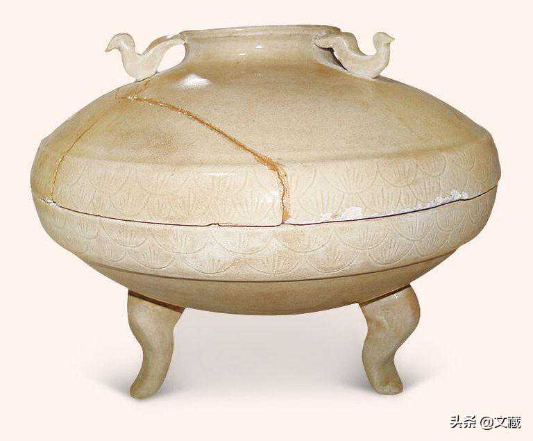 五代白釉刻花莲瓣纹三足炉