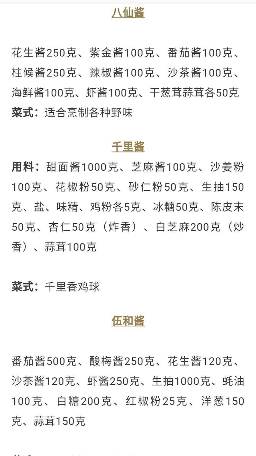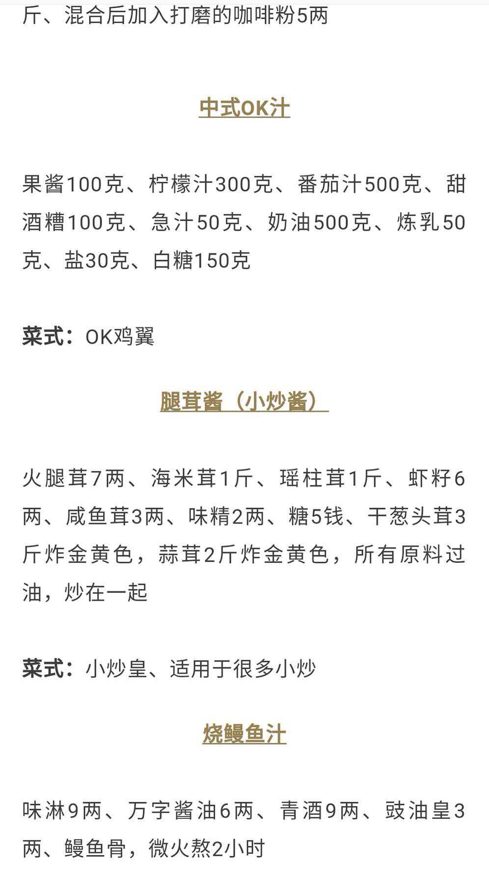 以上这些呢就是属于咱们中餐上面所用到的一些酱料,比例精准到克。在厨房里面工作的兄弟呢,也可以把这个收藏起来。像北方里面的一些小炒酱啊,炒黄酱啊,这些用于一些小炒,味道是非常不错的。好啊好好好好