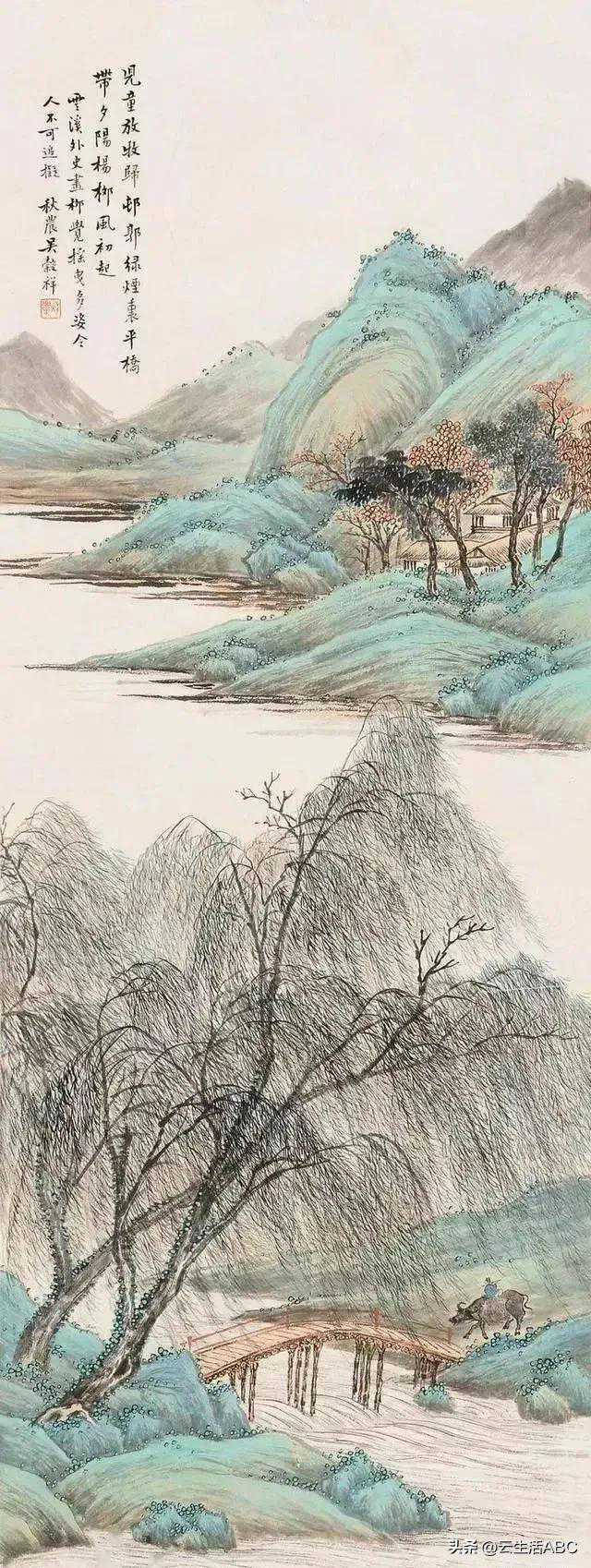 我们可以凝神慢赏吴谷祥的作品,他画的山石苍劲有力,层峦叠翠;画松针精致如针;画柳树婀娜多姿,仪态万千;画人物更是细腻唯美,清新生动。没有坚实的基本功,是不可能画出此优秀作品的,他的仕女画至今仍然被世人所看重。