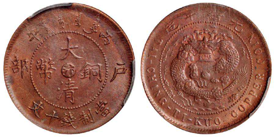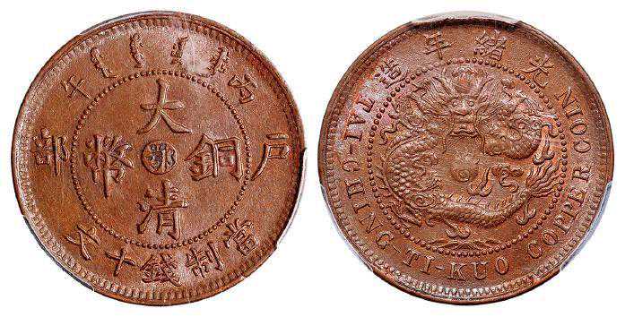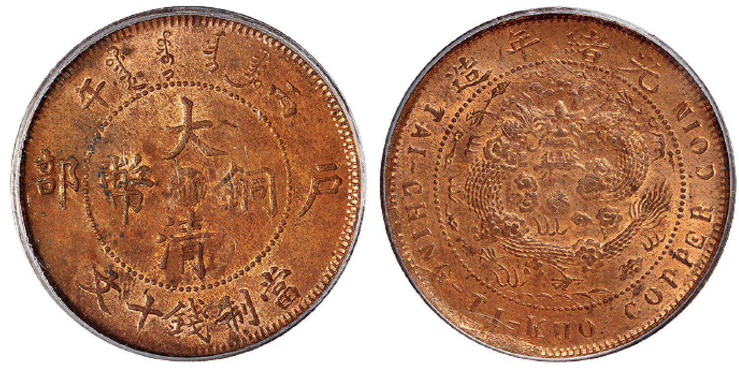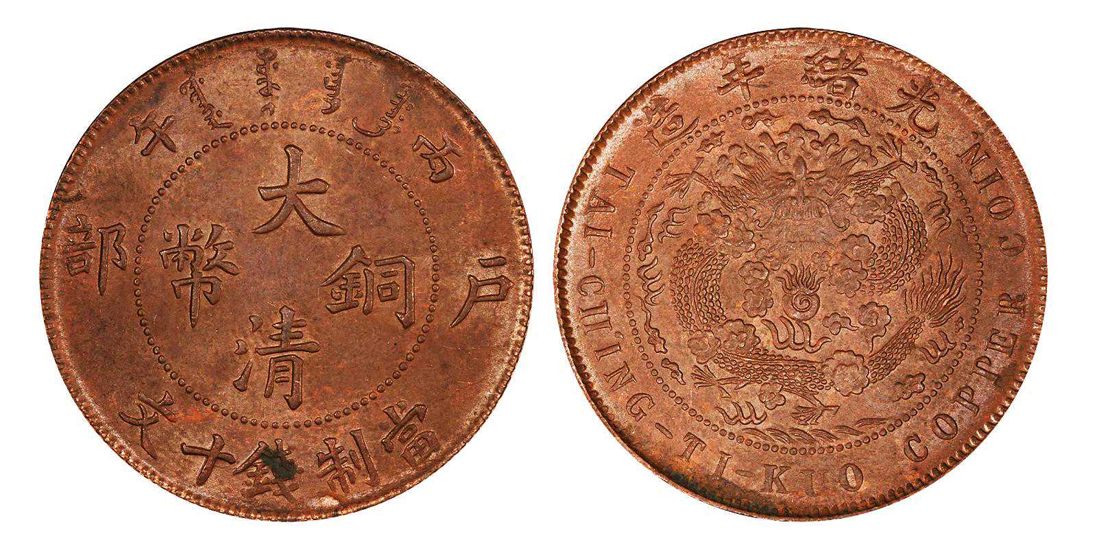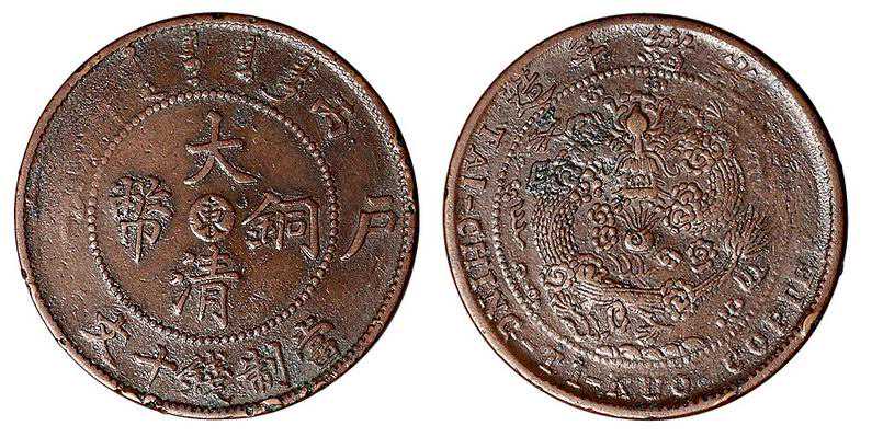 一个是前期的“光绪元宝”(1900年~1906年),一个是后期的“大清铜币”(1905年~1911年)。