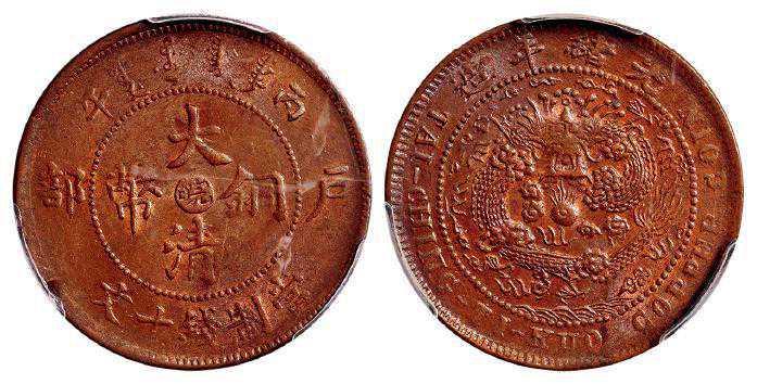 北洋造中心“直”丙午户部大清铜币中心“直”十文
