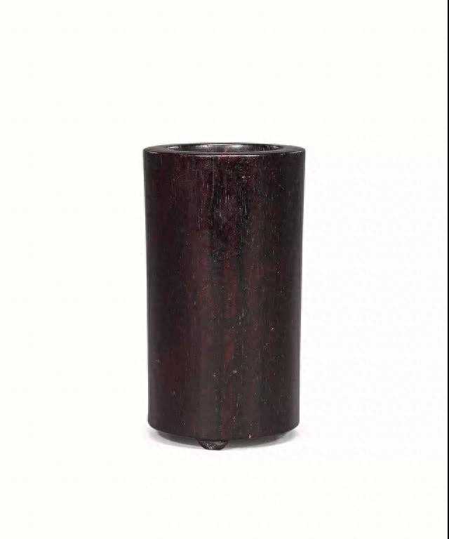清早期紫檀诗筒,参考价:3.6万-5.6万,此笔筒纹理美观的紫檀制成,直身圆口,下承三小足。通体光素无工,以自然瑰丽纹理取胜,予人以简约雅致之感。
