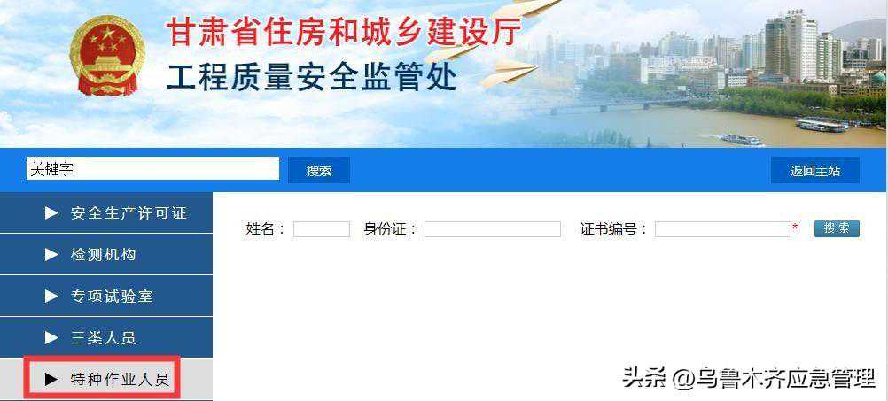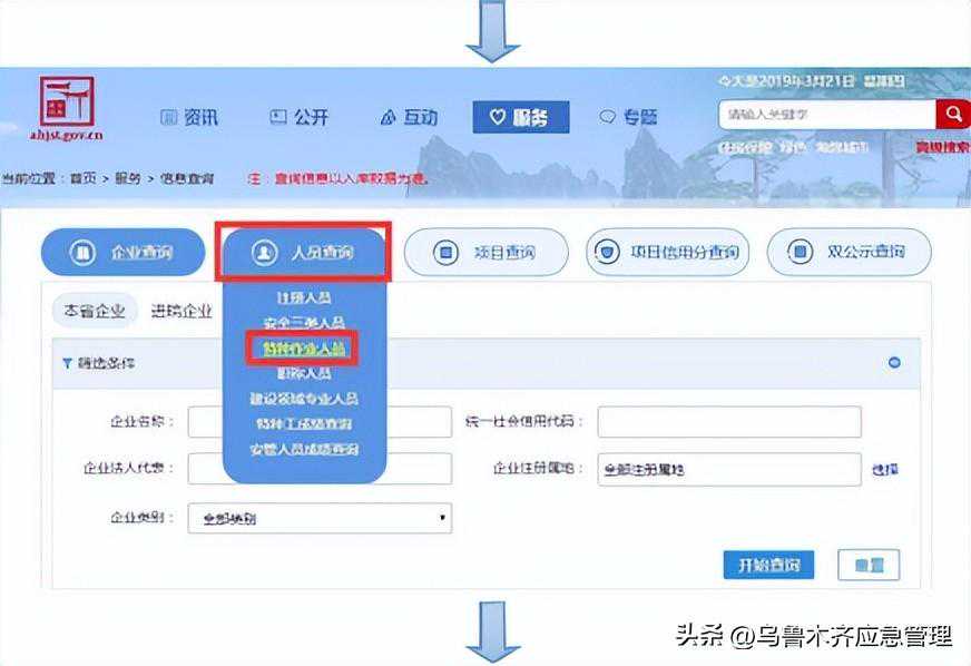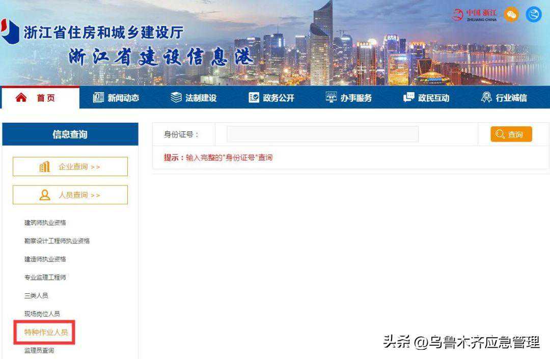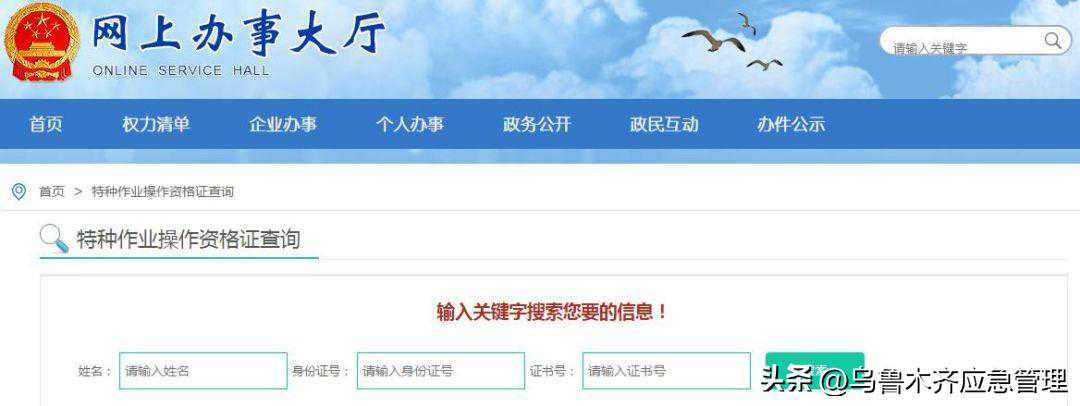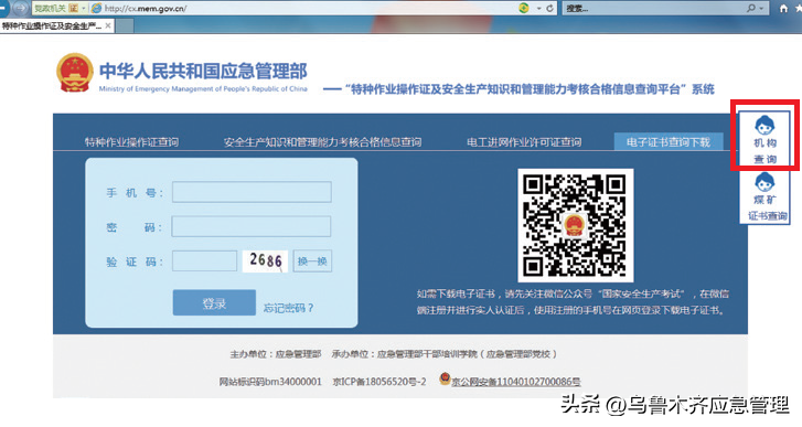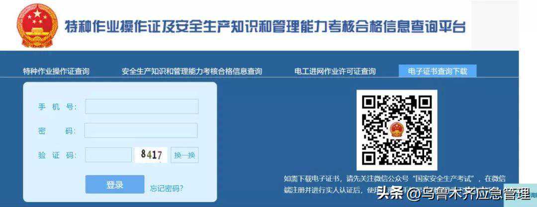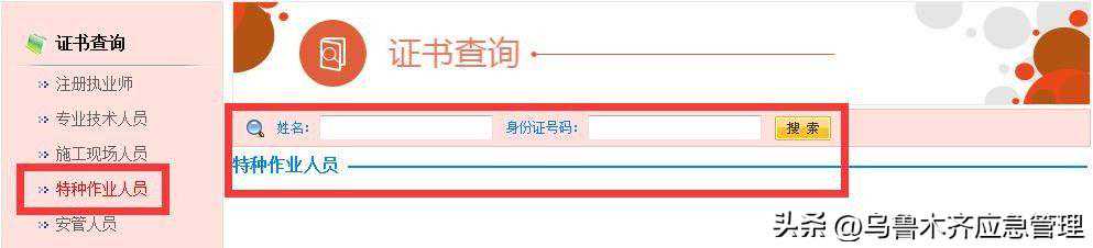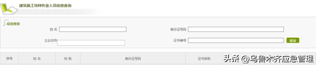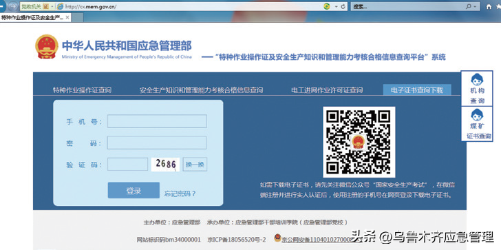 “特种作业操作证及安全生产知识和管理能力考核合格信息查询平台”进行查询