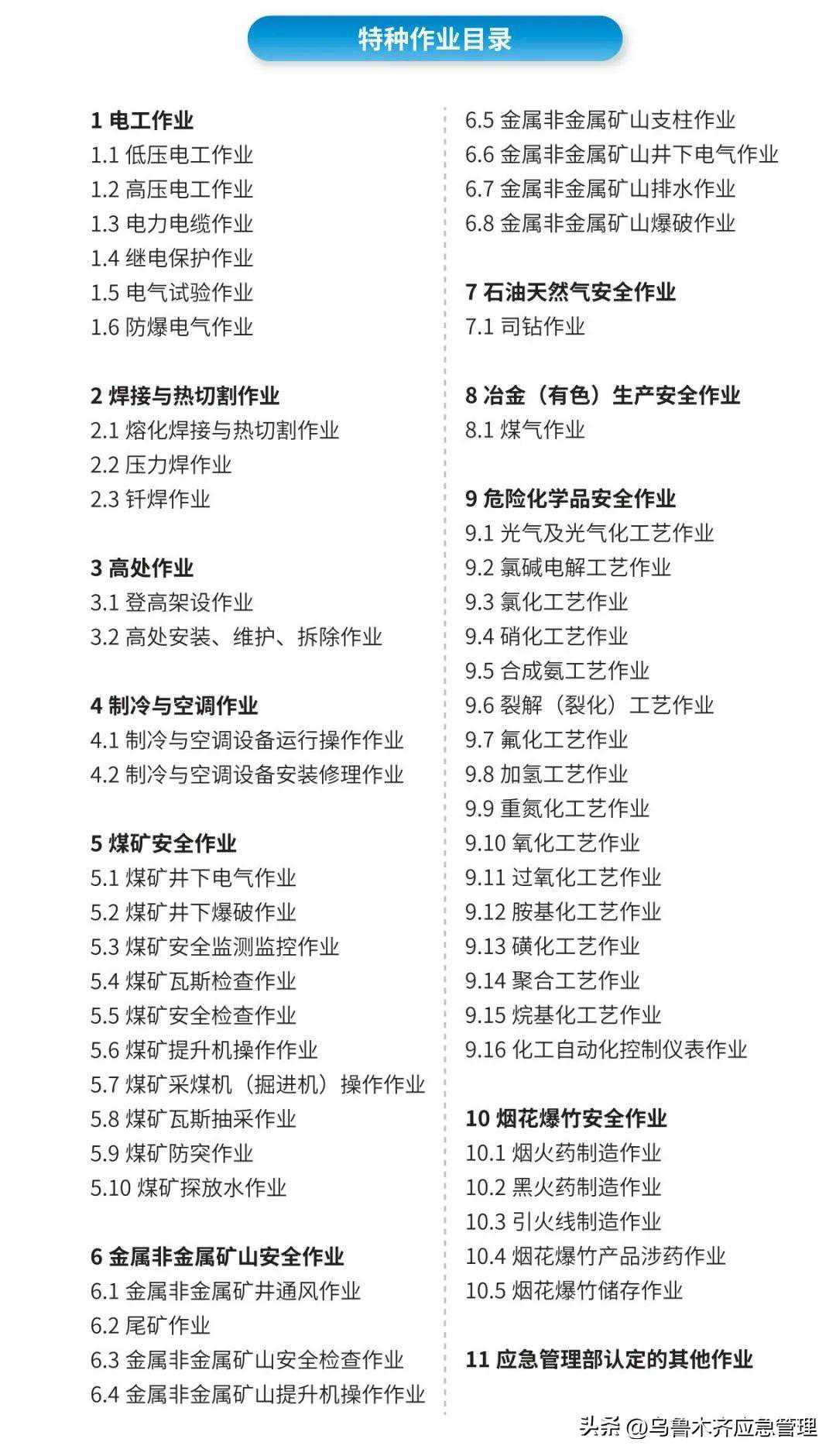 国家安监总局(应急管理部)《特种作业人员安全技术培训考核管理规定》国家安全生产监督管理总局第30号令规定:特种作业是指容易发生事故,对操作者本人、他人的安全健康及设备、设施的安全可能造成重大危害的作业。特种作业的范围由特种作业目录规定。本规定所称特种作业人员,是指直接从事特种作业的从业人员。特种作业人员所持证件为特种作业操作证。