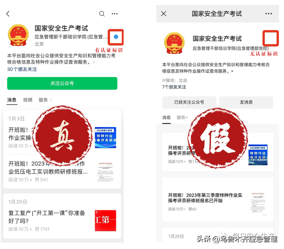 六、如何判断证书查询平台和微信公众号(国家安全生产考试)真伪?