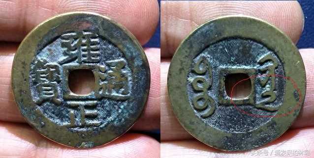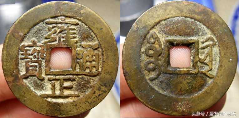 如图所示,此版宝黔局“雍正通宝”钱币叫“昌手黔”,顾名思义,因为其面文类似宝昌局而得此名,正面雍正二字都较其他版别瘦,背面满文钱那一竖笔中间有弯曲