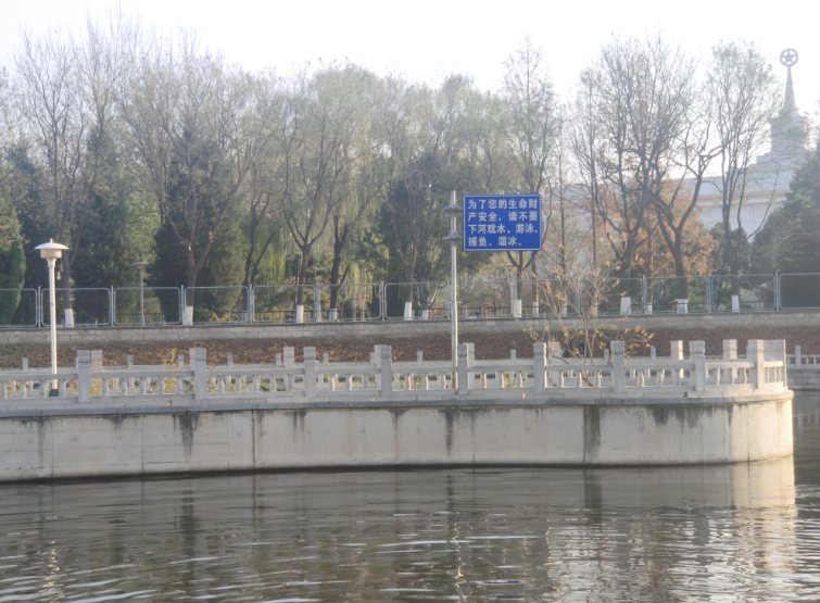 八一湖畔的警示牌