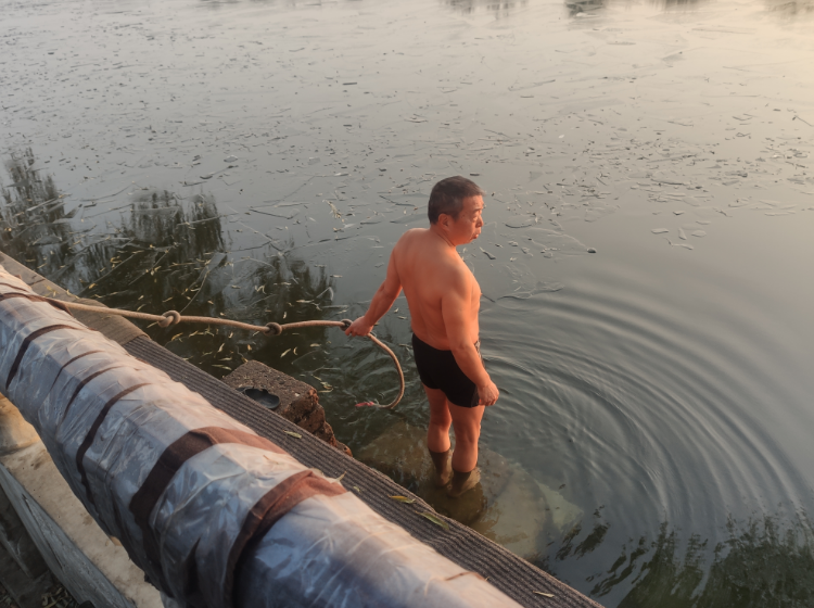 去年初冬,孙振海和队员们在这里游泳,一个中年女子急匆匆地跑了过来,“师傅,北边100米有个姑娘跳河了,您能帮个忙吗?”