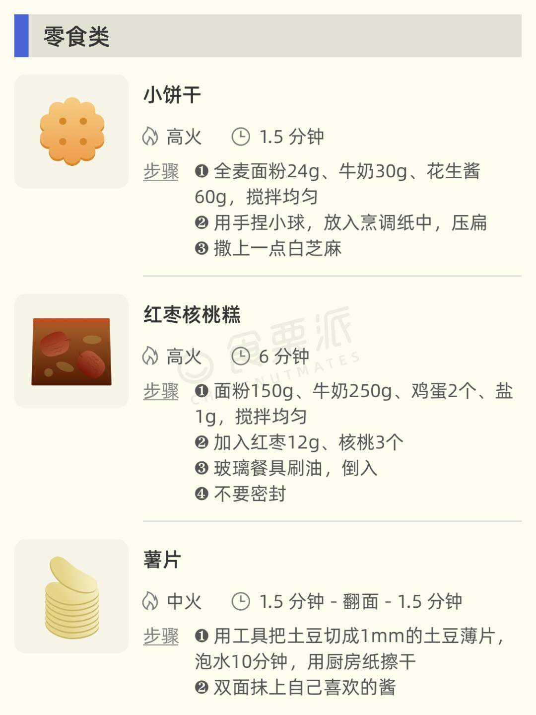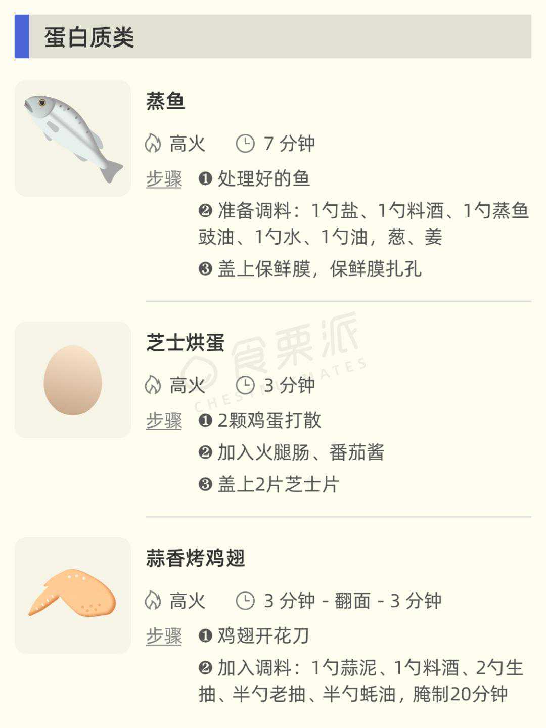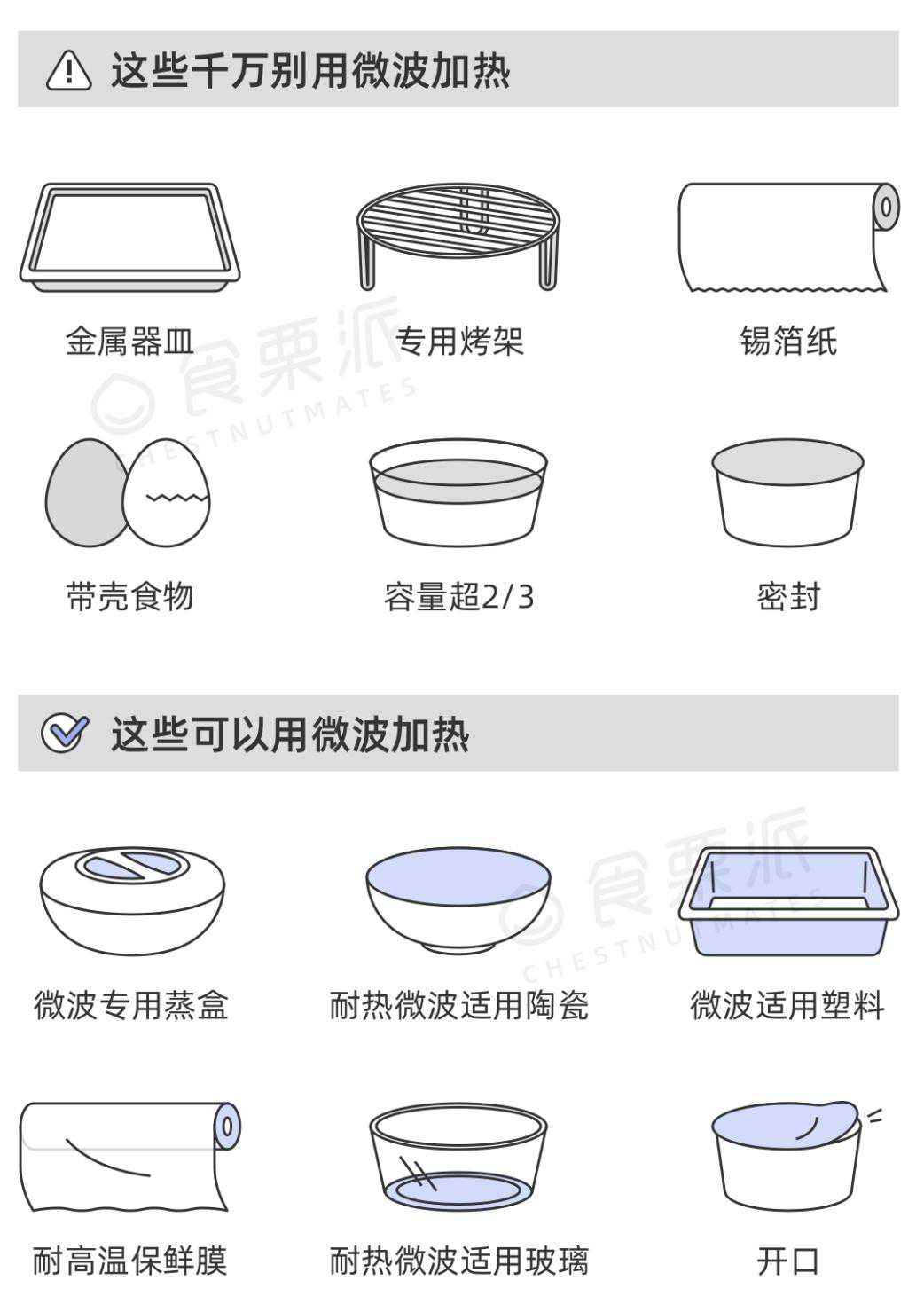 要注意的是,并不是所有容器所有食材,都适用于微波炉。我们替大家整理了微波炉使用烹饪指南,对照着看就成了↓