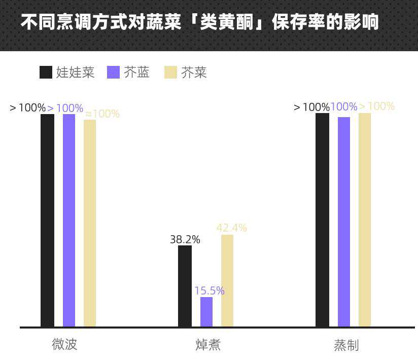 还有蔬菜中的抗氧化物质类黄酮,与心血管疾病和癌症的风险降低有关。微波也能很好地挽留住它,甚至可能出现类黄酮含量不降反升的情况。另外,有实验还专门研究了烹调方式对蔬菜抗氧化能力的影响。发现微波后,苦瓜、西葫芦、芹菜、芦蒿等蔬菜的抗氧化能力有所提高。