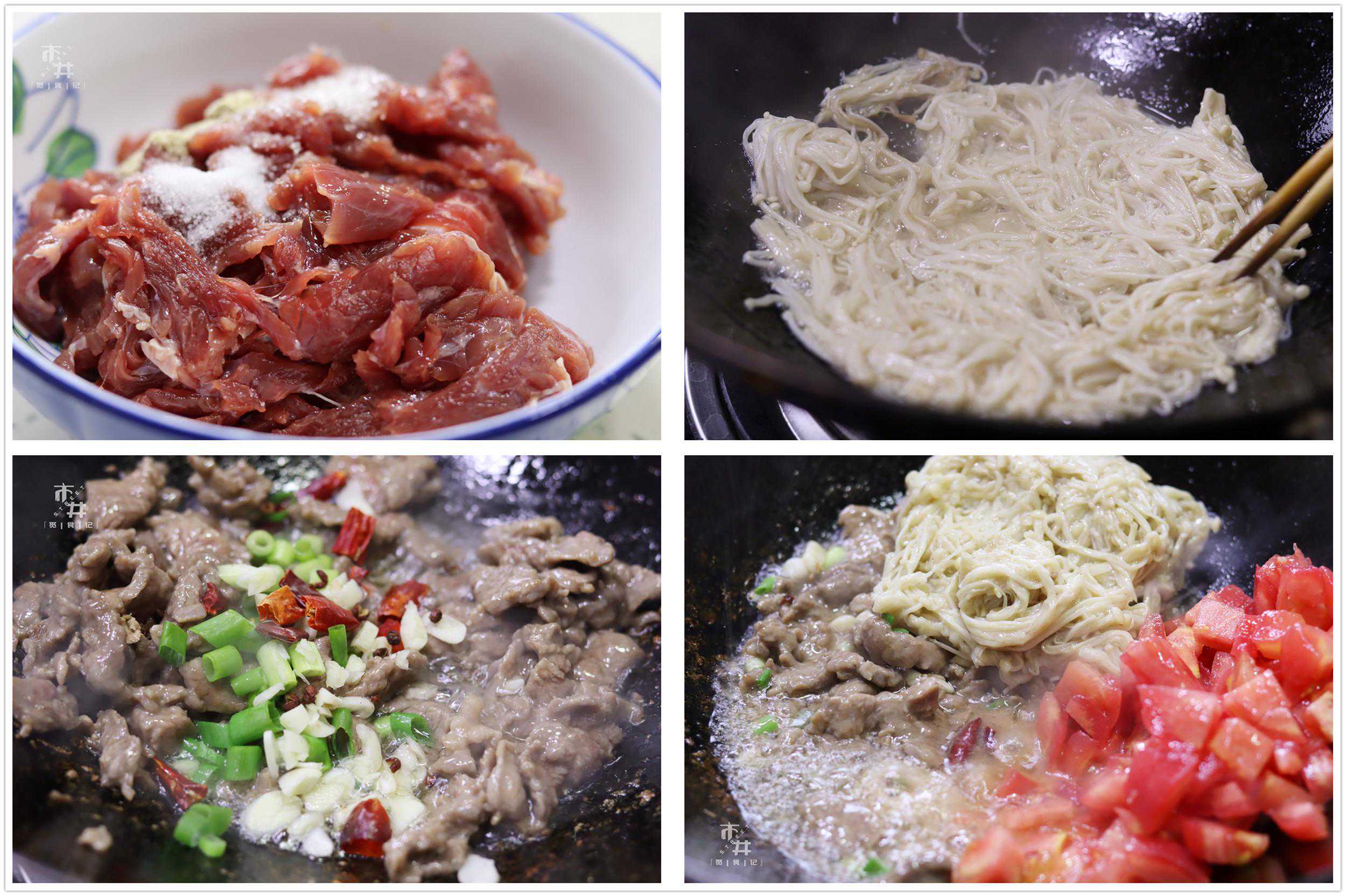 【茄汁金针菇炒牛肉】