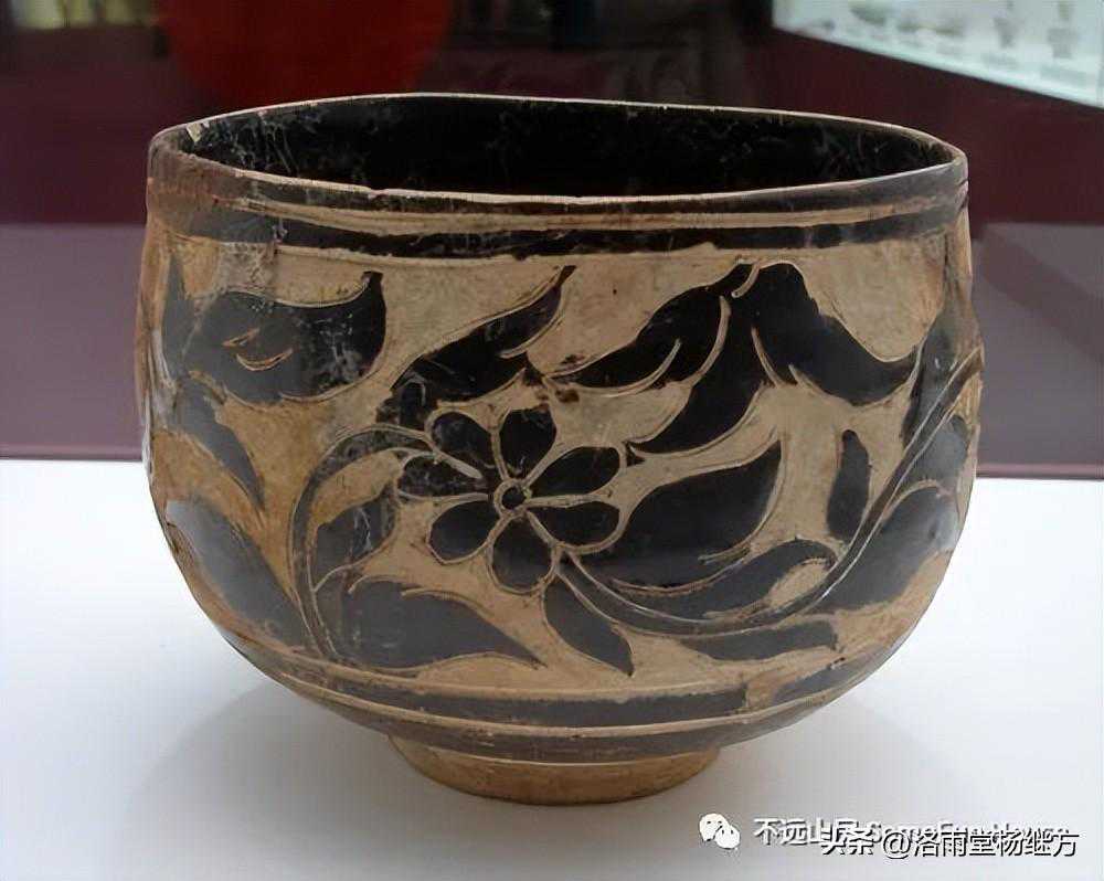 山西窑口、西夏灵武窑有将胎土施酱釉、褐釉、黑釉后直接剔刻图案,然后烧制,土黄色胎土与深色釉料的对比鲜明,剔刻图案生灵活现。