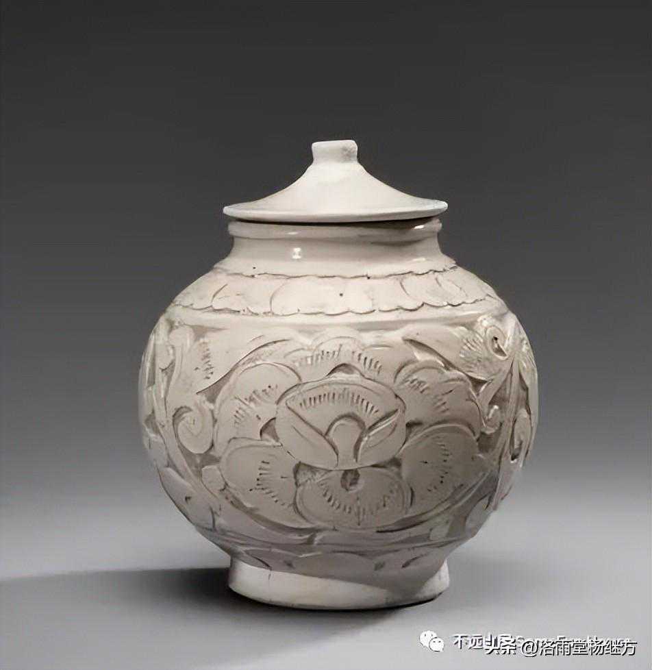 奉文堂旧藏北宋磁州窑白釉剔牡丹花卉纹盖罐
