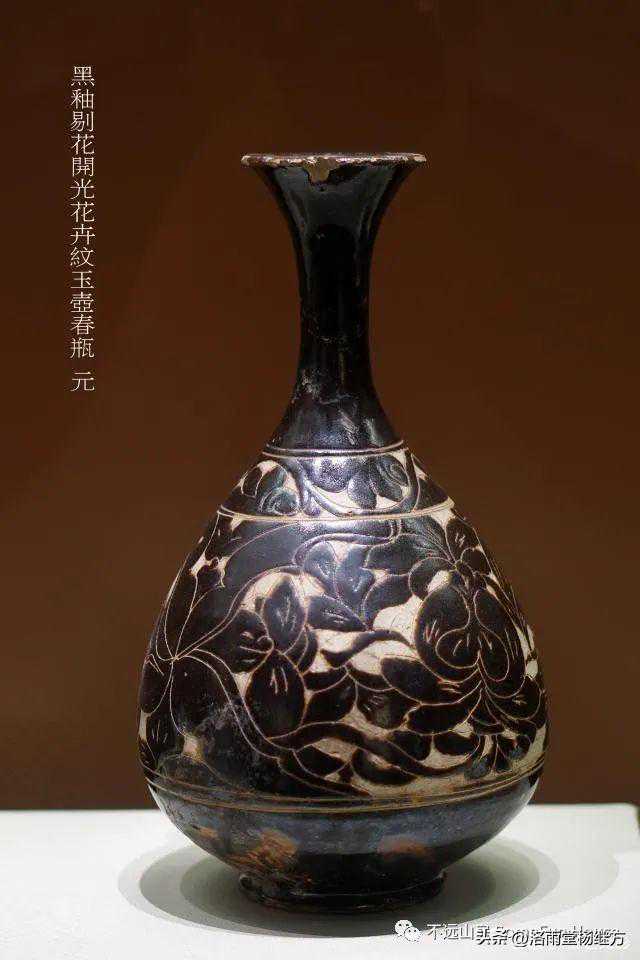 黑釉剔花开光花卉纹玉壶春瓶元山西博物院藏