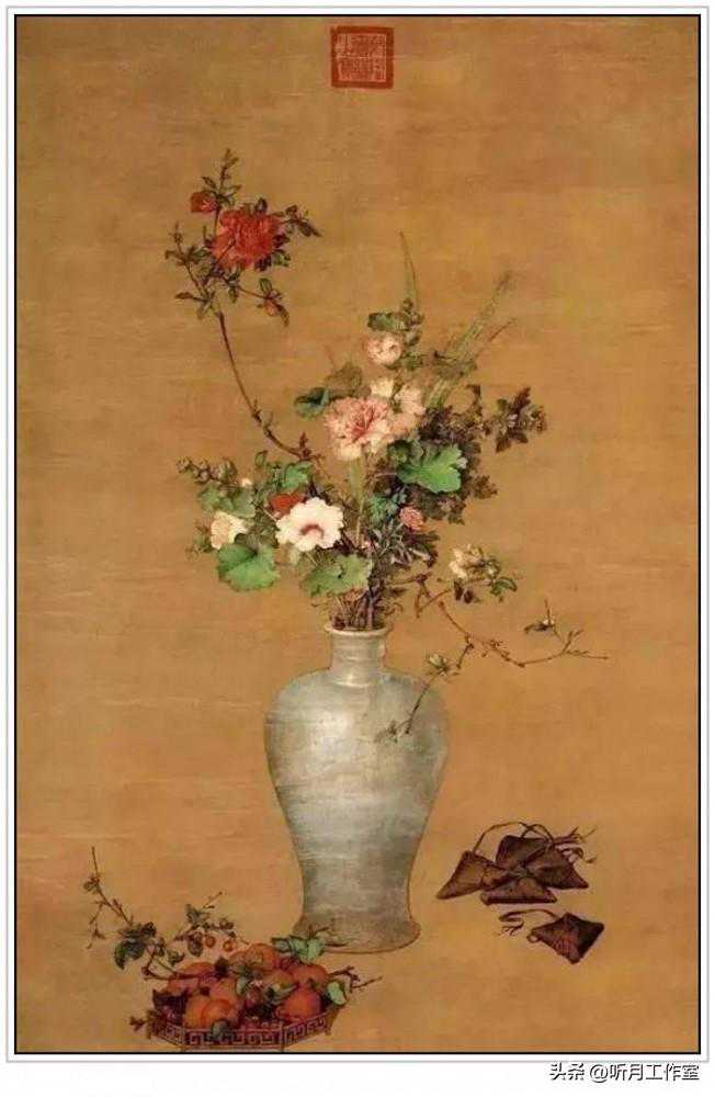清代著名画家罗聘《端午图》1795年作。此画所绘均为端午节常见之物,看似漫不经心,实则苦心孤诣。着色鲜丽,艳而不俗。