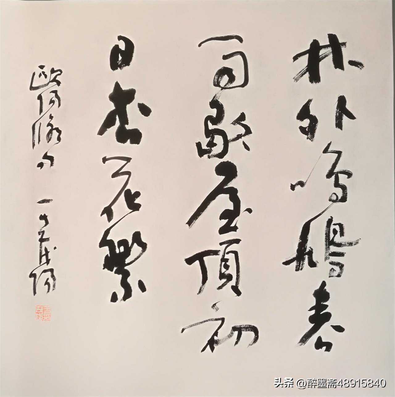 释文:林外鸣鸠春雨歇,屋头初日杏花繁。