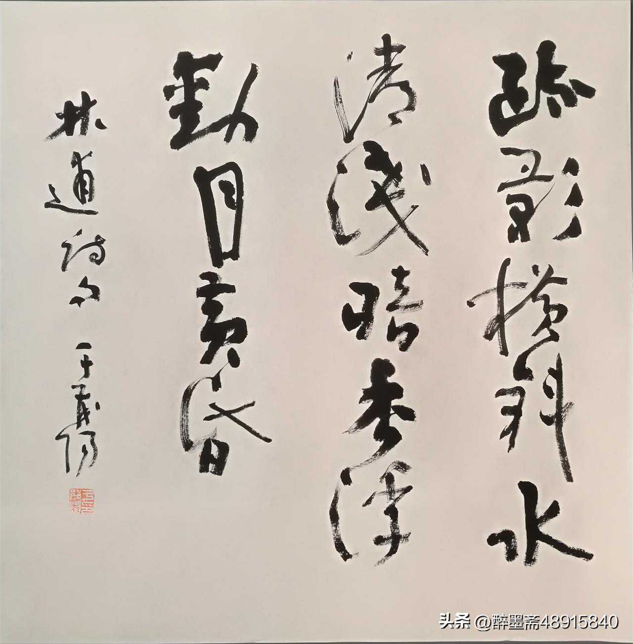 释文:疏影横斜水清浅,暗香浮动月黄昏。