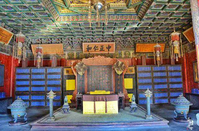养心殿的名字出自孟子的"养心莫善于寡欲",意思就是:修养心性的最好办法是减少欲望。皇帝的宝座设在明间正中,上悬雍正御笔“中正仁和”匾。
