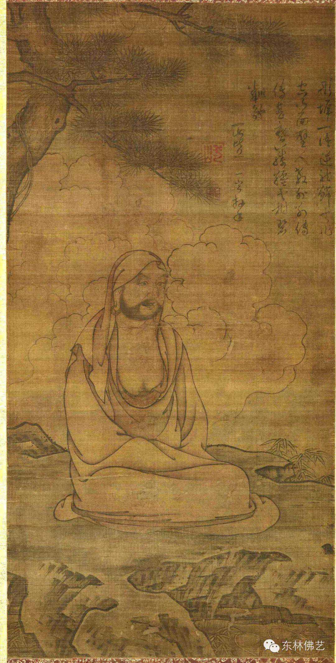 达摩大师自海路来到震旦后,闻说梁武帝信奉佛法,于是至金陵(今江苏南京)与其谈法。由于达摩大师与梁武帝的佛教理念不合,遂“一苇渡江”止于嵩山少林寺,于寺中面壁九年,称“壁观婆罗门”。