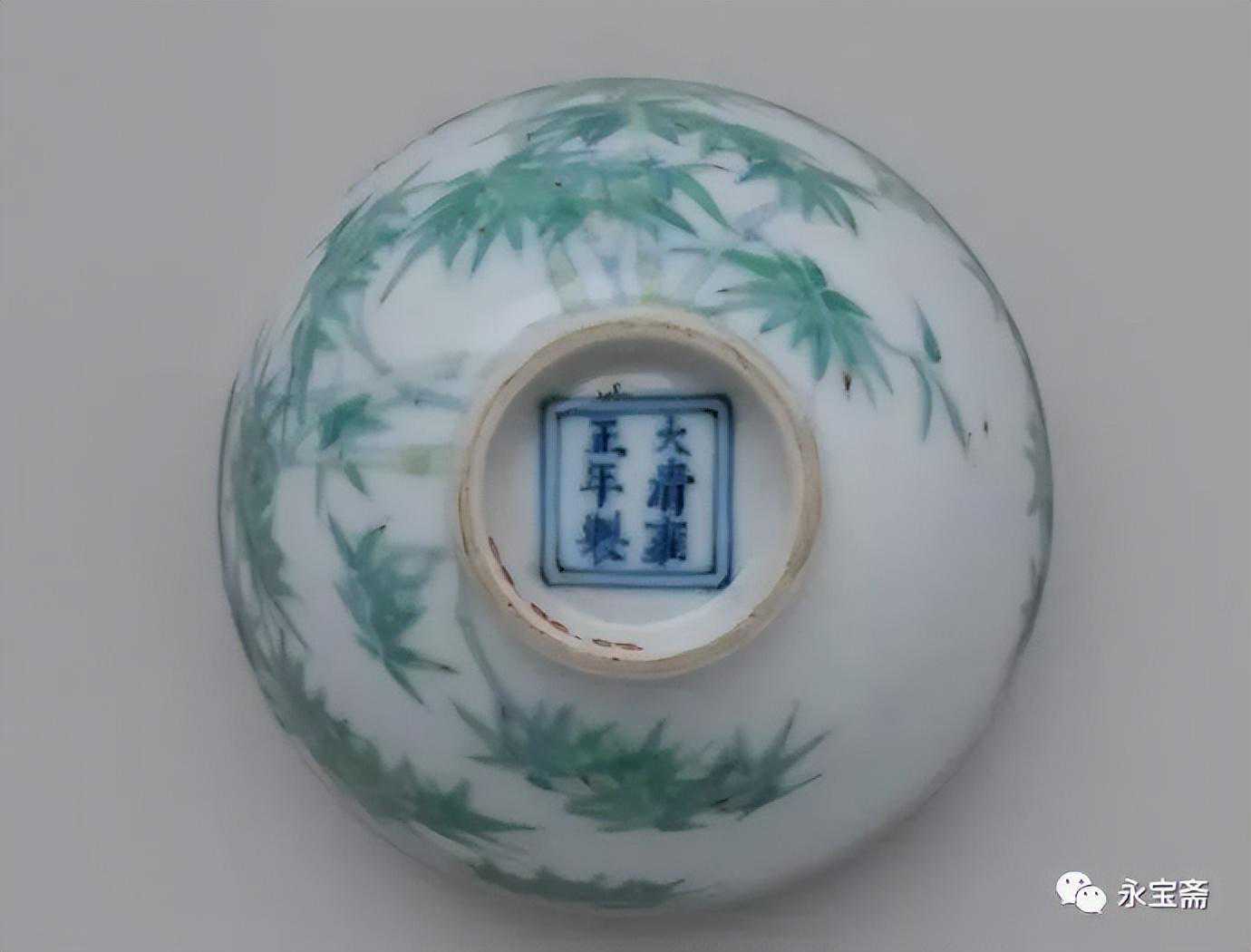 清-民国斗彩(雍正款)绿竹纹杯永宝斋藏