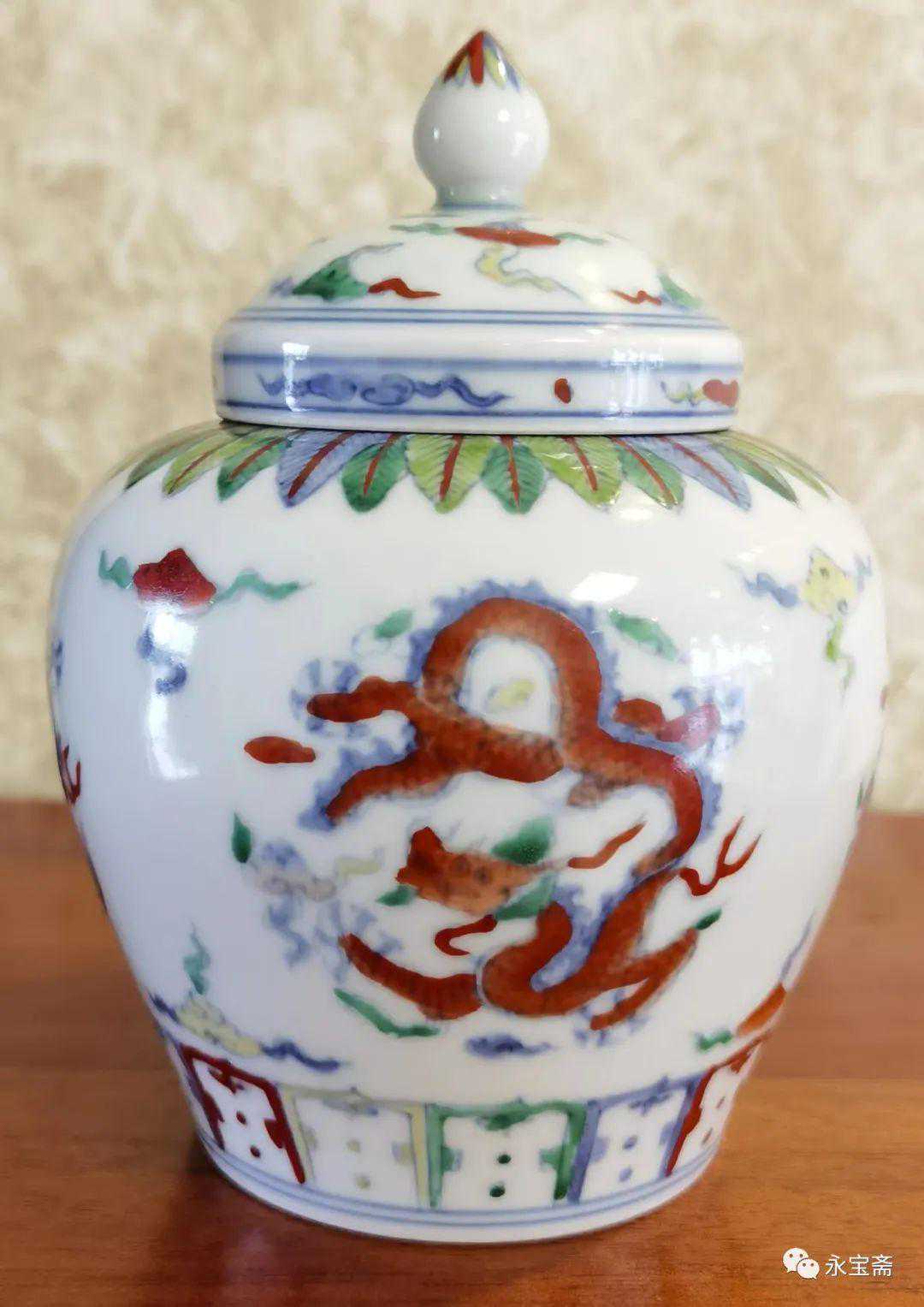 现代斗彩(天字款)云龙纹盖罐永宝斋藏