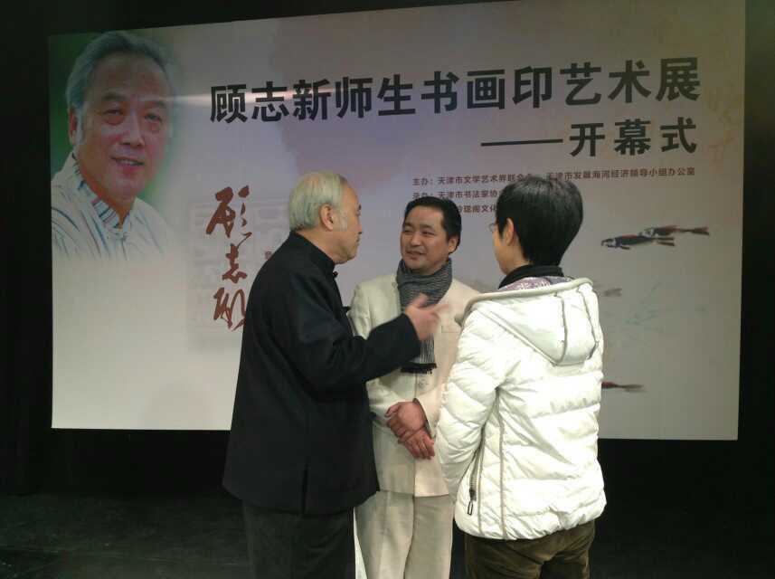 《非遗之美》总编姚泽民(左一)与著名书画家顾志新(右一)在天津