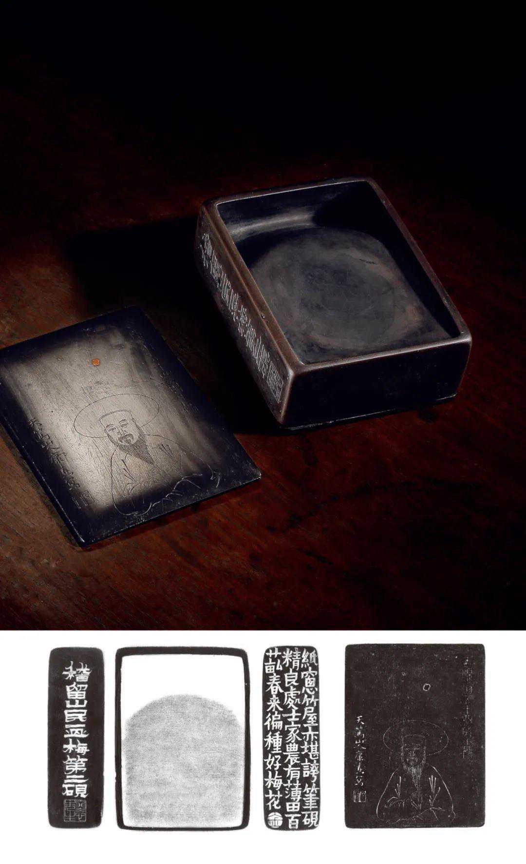 砚台有别于其他的文房器具,它的产生和发展,一定都是由文人的参与或者主导的。它所包含的艺术价值,远比我们原本认知的要多,比如铭文、递藏、材质、形制、纹饰等,就分别融入历史、文学、书法、铭刻、绘画等艺术形式,一方砚台也因此变得格外有逸趣。