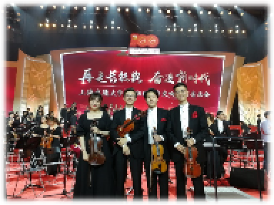 我参加过多场与演奏家老师合作的独奏音乐会,用音乐语言与大师对话;我跟随乐团两度参加大艺展,分别荣获上海市一等奖和全国一等奖;我多次参与新加坡、日本、德国等国际乐团交流演出活动;我也积极参与各种校园活动,包括三个版本《长征组歌》的演出,为校园美育文化增砖添瓦。