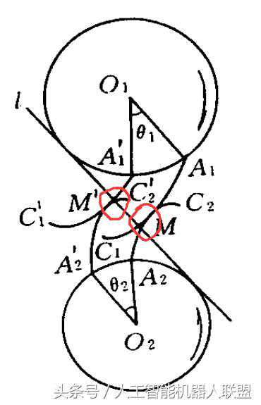 两轮转动时,在接触点(如M,M’)上力的作用方向恒在同一直线上上,而且这根直线与两个渐开线形的接触面(切面)保持垂直,由于垂直,它们之间不会产生“打滑”和“摩擦”,这也就客观上减小了齿轮啮合的摩擦力,不仅能提高效率,还能延长齿轮的寿命。
