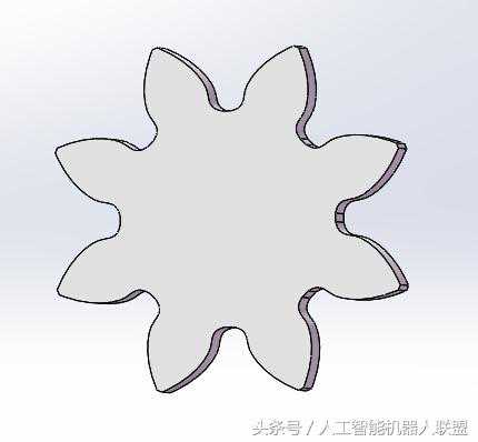而17是在我国齿轮标准的情况下计算出的极限齿数,齿数小于17的齿轮在使用范成法正常加工时就会出现“根切现象”,这时便要调整加工方法,如变位,如图为变位加工的2模8齿齿轮(小根切)。