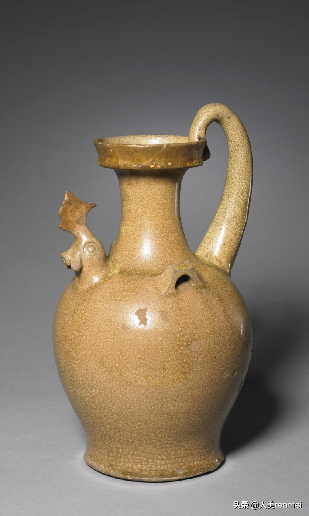 宋代青釉刻花龙流三兽足提梁壶美国大都会艺术博物馆藏