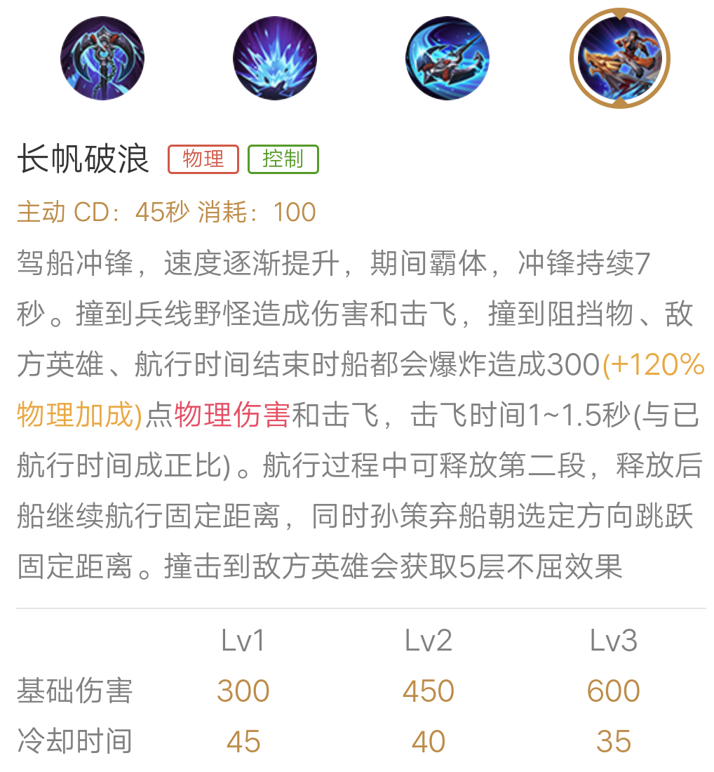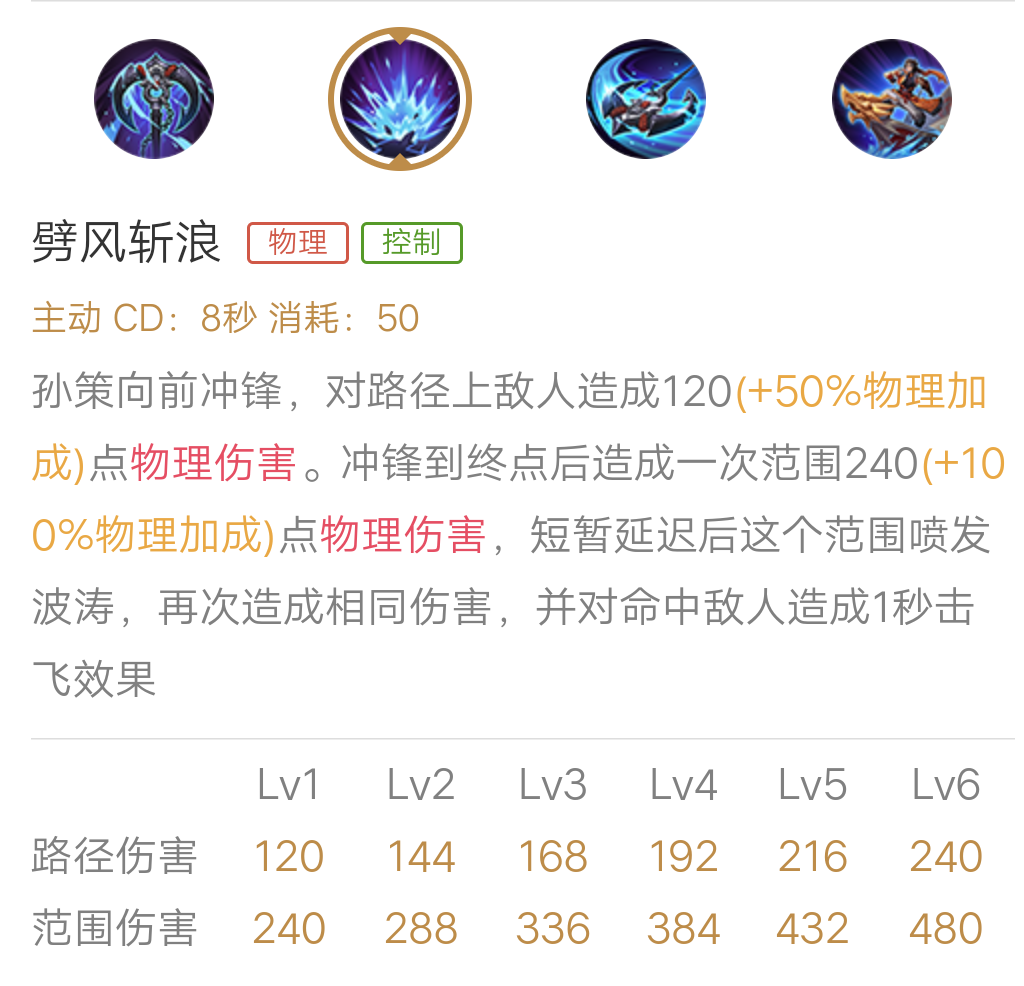 这个一技能可是有3段伤害的哦!这也是孙策的主要位移技能,追击,逃跑都很有效果