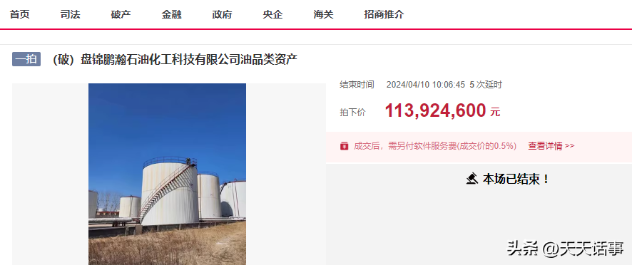 最近几天,在阿里拍卖和京东拍卖网上,相继出现了几宗跟油品有关的拍卖,而且都是大宗拍卖,几千万起的拍卖。4月10日,在辽宁盘锦,也出现了一宗重量级的油品拍卖,此次拍卖的油品种类更多,重量更大。拍卖属于破产公司的资产拍卖,最终也是成功被人买走。今天我们就来看看这宗重量级拍卖。
