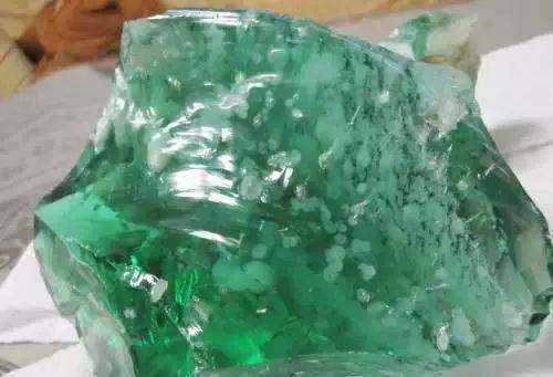 卖者常选用璞厚水好,略带绿色的水石,顺着翠的分布方向,在玉石中凿一小孔。灌入绿色的染料(据说,有用四氧化碳溶解绿色有机玻璃,灌入后,等四氧化碳挥发后再封口)做好假皮。这种假料,外表显有绿色,强光下照射,呈半透明状,内有绿色映出,似乎表面的翠深入内部,而且越深入,颜色越好,很容易迷惑人。