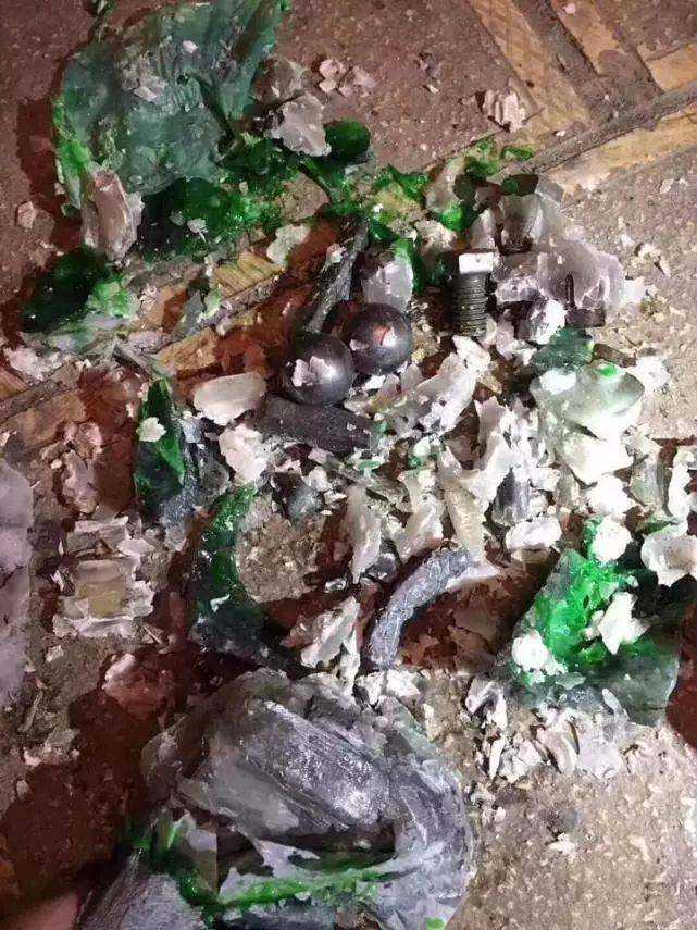 用锤子砸开之后,里面全是复合胶,甚至为了加大重量还放入了铁球铁钉