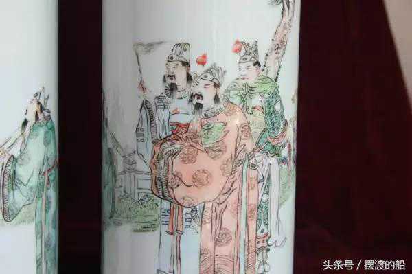 “张松献图”帽筒,绘画瓷中,人物为上2