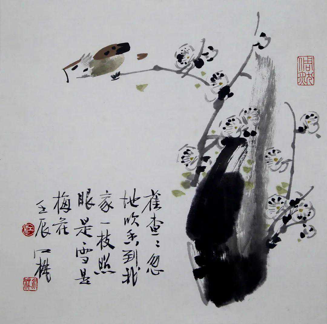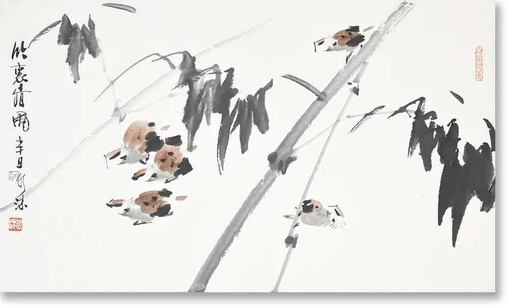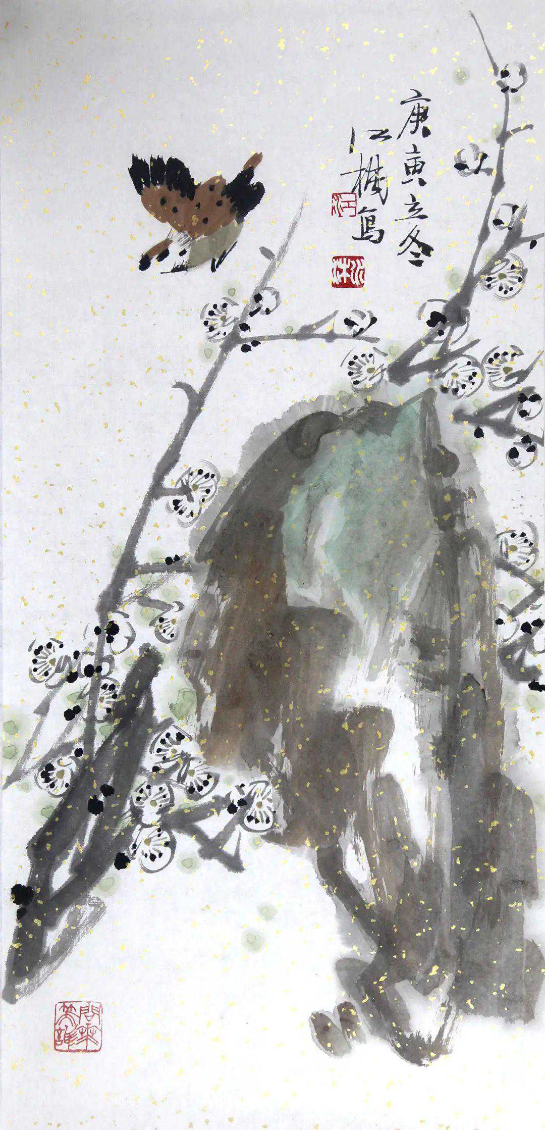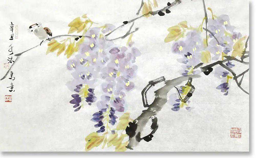 他的花鸟画“笔墨全在精神二字,所以一枝一叶了无尘碍,平静处自见幽微”。欣赏江水沐的画,便强烈地觉出他在师法造化时的馨香。透过画家笔下富有情调和韵律的花鸟,我们不仅体味到一种清新隽永、淡雅明丽的美,而且还能领略到作品中那静谧、灵动的神韵。