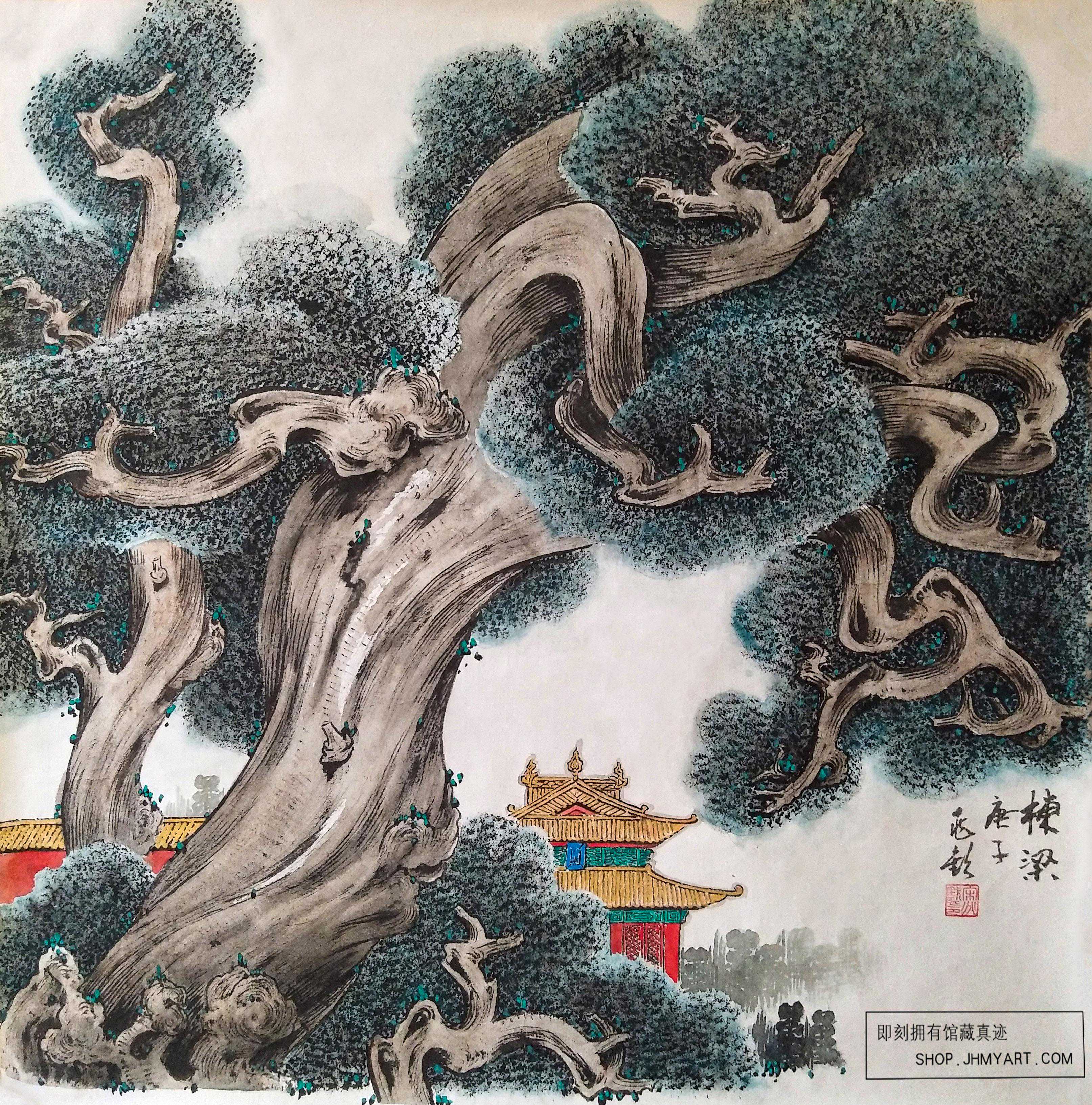 这幅作品适合每一个人收藏,毕竟,谁又不想成为栋梁呢?要想成为栋梁,必要有柏树之坚韧不拔,百折不回,所以画中的线质必须坚硬,成长的过程也必然有曲折,这其实就是暗示说,一个人足够坚韧,战胜曲折,才可能走近柏树的后面的庙堂,走近国家,成为时代的栋梁。