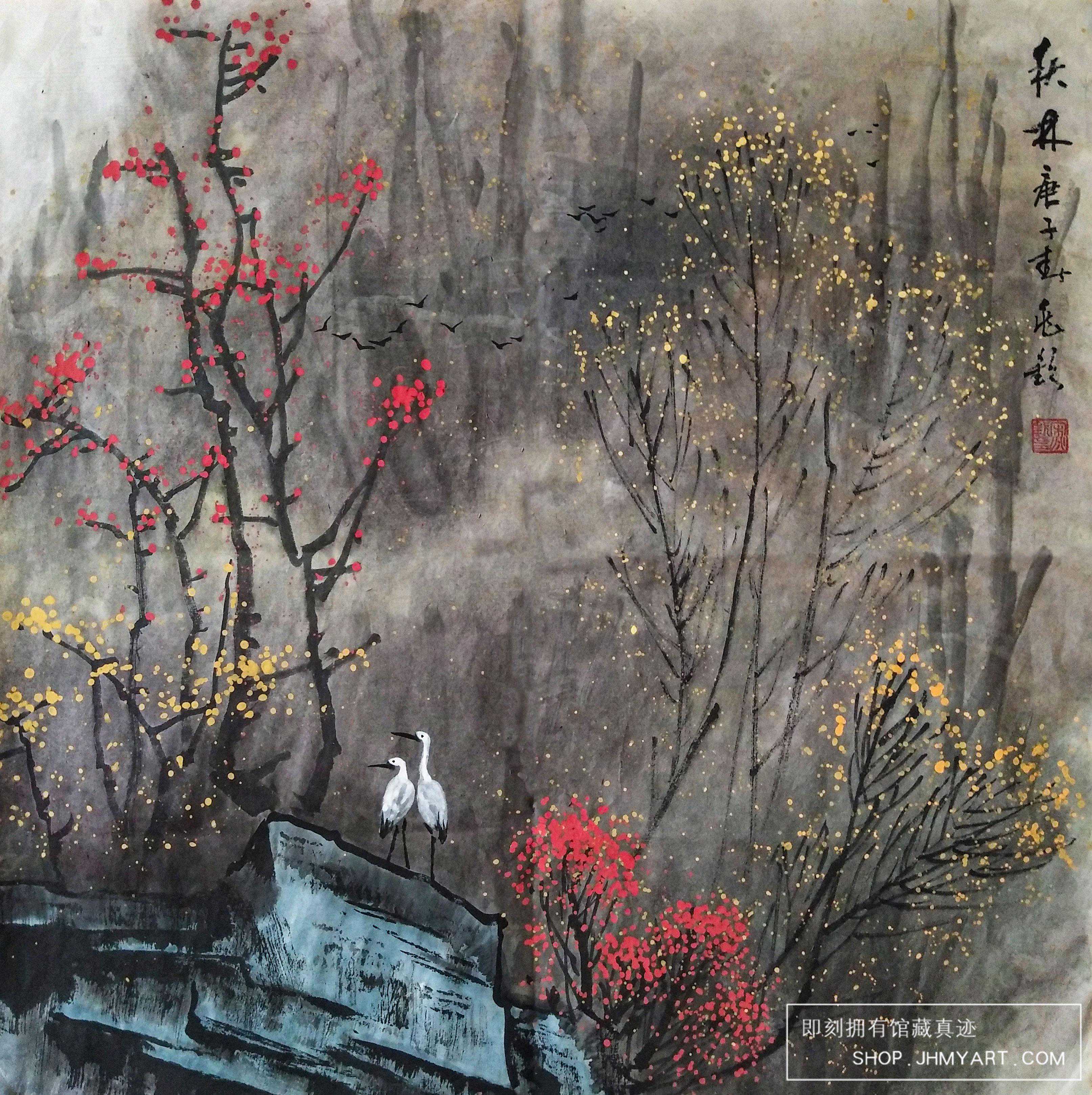 秋天有多样美,正如诗人刘禹锡所说:自古逢秋悲寂寥,我言秋日胜春朝。秋天的美是含蓄的,同时也是奔放的,它一方面有着物质的丰富,一方面又保持着精神上的洁癖,正如我们看这张画,它的内容是丰富的,是华彩的,这幅作品既有传统水墨的醇厚味道,又有西方美术的视觉效果,也很好的呈现出点线面三要素,让画面不再单调,在色彩上,有黑色的厚重,红色的热情、黄色的富足。收藏这幅作品,也就是收藏了一个丰富多彩的季节。
