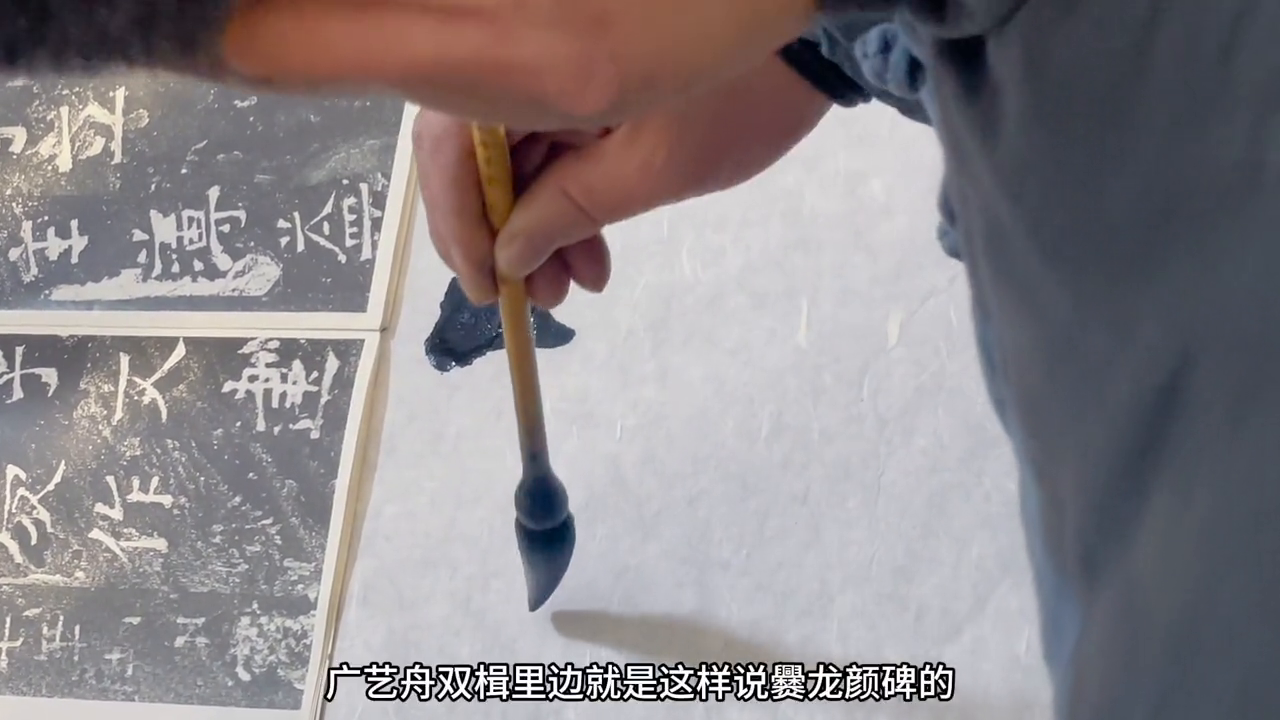 所以说它的主要的姿势还是得自于爨龙颜。爨龙颜写的时候一定像这样的切笔,一定要写的写厚的,包括是刚才那长的横画,一定要有呼吸,也就有提案,中间不要写的像一个薄片一样。