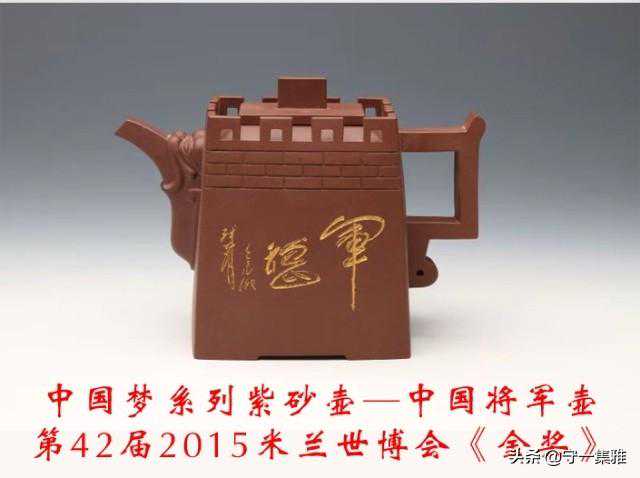 艺术成就《中国梦系列紫砂壶—中国将军壶、龙吟九州壶、中国钓鱼岛壶》被第42届2015米兰世博会作为《指定产品》入展意中联合馆并荣获《金奖》。作品分别收藏于意大利意中联合馆、泰国皇室、葡萄牙、辽宁省博物馆、海南省博物馆、山西省艺术博物馆、人民大会堂、钓鱼台国宾馆、中央军委办公厅、北京会议中心以及文化名人、收藏家收藏与陈列。并由一百多家官媒报刊杂志书刊等宣传报道,多次受到将军部长等领导的亲切会见。
