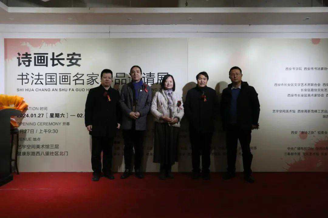 西安书学院院长王江,西安碑林博物馆研究员王冰,陕西省硬笔书法家协会主席高继承,西北大学教授邓益民,秦砖汉瓦博物馆馆长任君宜,西安市美术家协会顾问骆孝敏,陕西省刻字委员会张忠、西安市书协副主席刘勇,长安中国画画院院长马良,长安区书协主席王秋惠,长安美术家协会主席董晓光,长安美术家协会总顾问李保祥,长安美术家协会顾问刘超,长安书协副主席焦军昌、郭战备、王超、卢朝、张静雷、贾轲敏,长安书协秘书长王鹤,副秘书长王鑫、贺艳、孟鹏博、冉锐军,长安作协副主席张立,秘书长吕维,长安区教育督学赵晓宇,北张村造纸传承人杨亚飞,长安美术家协会副主席:刘刚、张宝省、罗平、刘肖恒、赵晓萍、雷虎、王国,长安美协监事长田江,艺宇空间美术馆馆长麻正,汇千喜宴饭店董事长李坤荣,陕西大周原酒业有限公司总经理刘志峰等领导和艺术家,以及书画、文学爱好者百余人参加开幕式。
